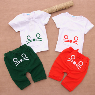 童装夏季儿童宝宝套装婴儿衣服装可开裆小猫短袖T恤男女童春夏装