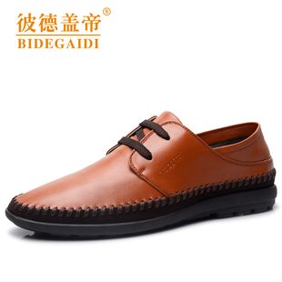 彼德盖帝 夏季新款韩版潮流真皮男鞋 透气男士休闲豆豆皮鞋正品
