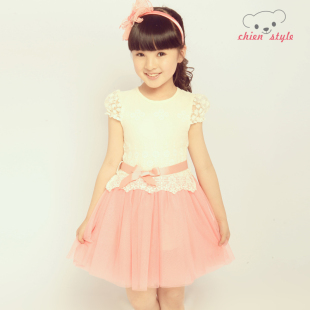 童装女童夏装2013新款儿童连衣裙韩版中大童公主纱裙蕾丝短袖裙子