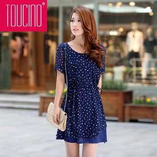 Toucino 大码显瘦雪纺连衣裙新款2013夏韩版夏装女装淑女裙子夏季