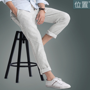 位置 男士休闲裤男装修身直筒棉亚麻男裤夏装薄款长裤子亚麻裤 男