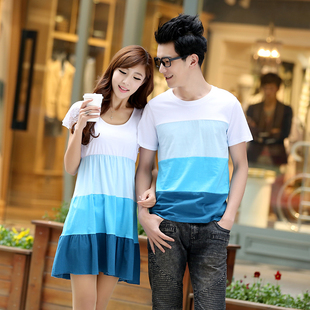 包邮2013夏季新款韩国情侣装夏装韩版女装连衣裙短袖宽松条纹T恤