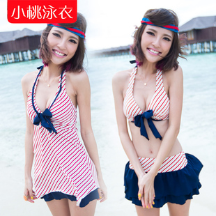 小桃泳衣 小胸聚拢钢托裙式分体泳衣 女平角四件套比基尼 包邮