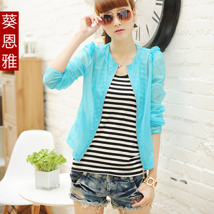 2013夏季韩版沙滩防晒衣透明长袖短款外套 防晒服空调衫 防晒开衫