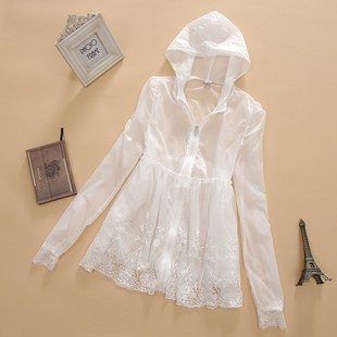 正品 防晒衣长袖透明蕾丝超薄外套女 夏防紫外线防晒衫开衫防晒服