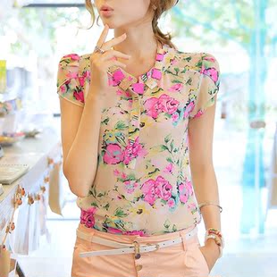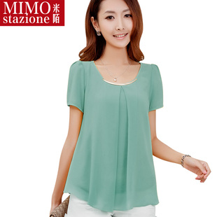 雪纺衫 短袖 韩版夏装女装修身大码品质清凉雪纺衫上衣新款2013