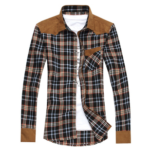EBC男装秋装2013新款衬衫男 衬衣 男 长袖衬衫男士衬衣韩版格子潮