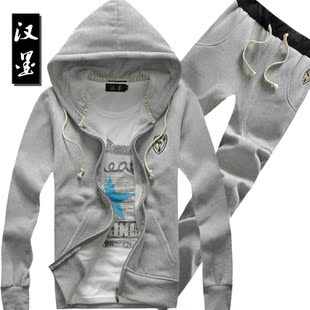 汉墨春款秋装 韩版男士卫衣 休闲连帽开衫卫衣男套装潮外套男装薄