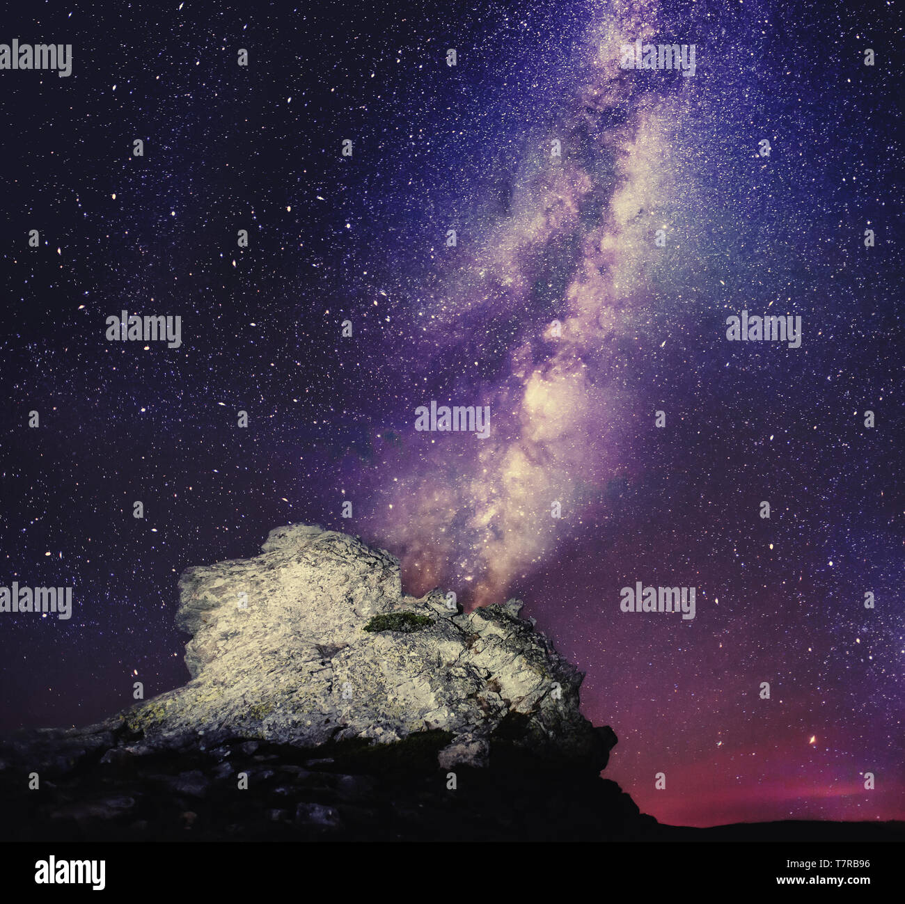 Hermoso cielo estrellado en las montañas. Antecedentes Viwid con Galaxy Fotografía de stock - Alamy