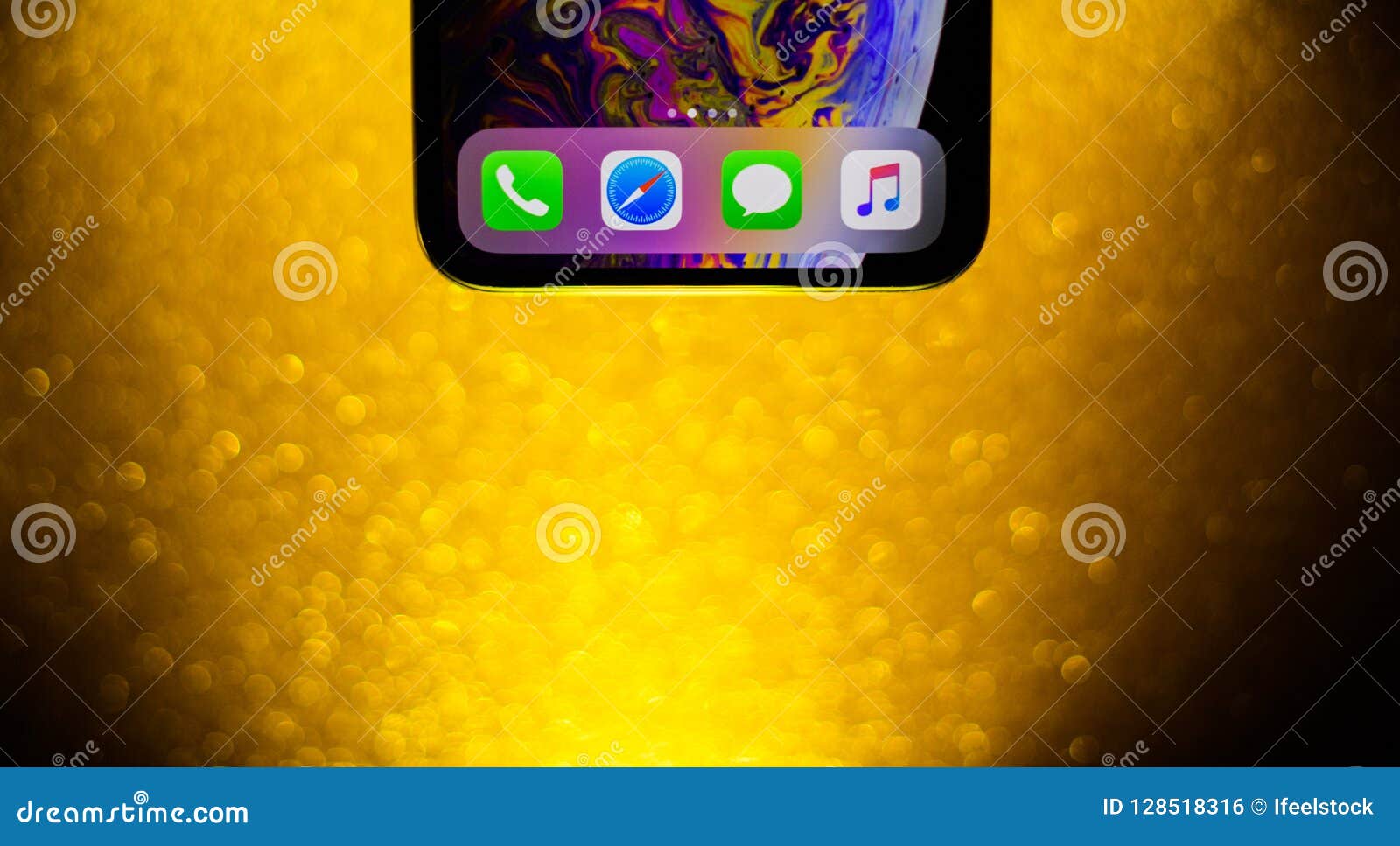 Ios 12 No Iphone Xs No Fundo Do Ouro Do Feriado Foto Editorial - Imagem de feriado, iphone: 128518316