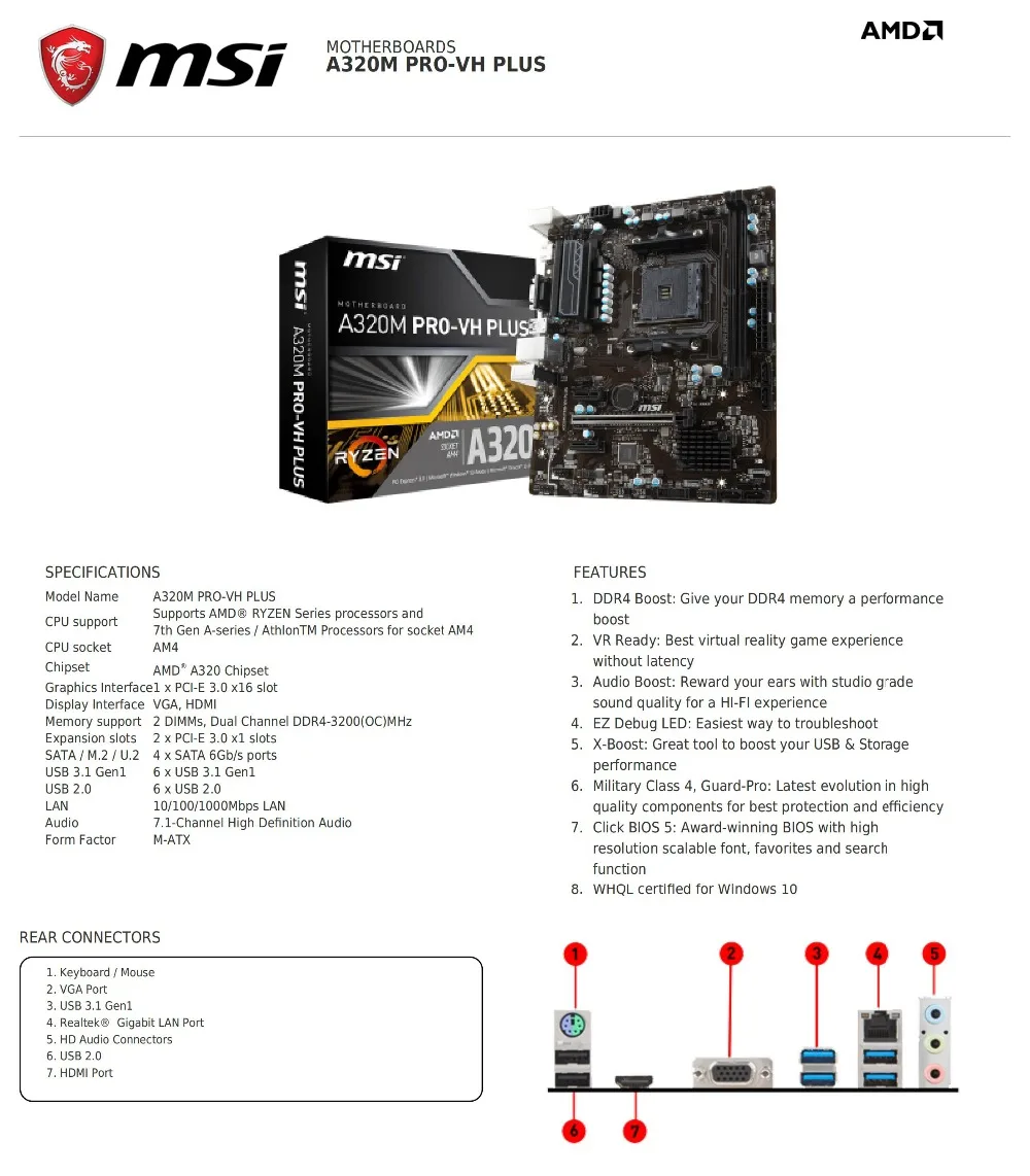 New Msi A320m Pro Vh Plus Original Motherboard Socket Am4 Ddr4 Usb2 0 Usb3 1 Vga Hdmi 32gb Desktop Motherborad Free Shipping Motherboards Aliexpress