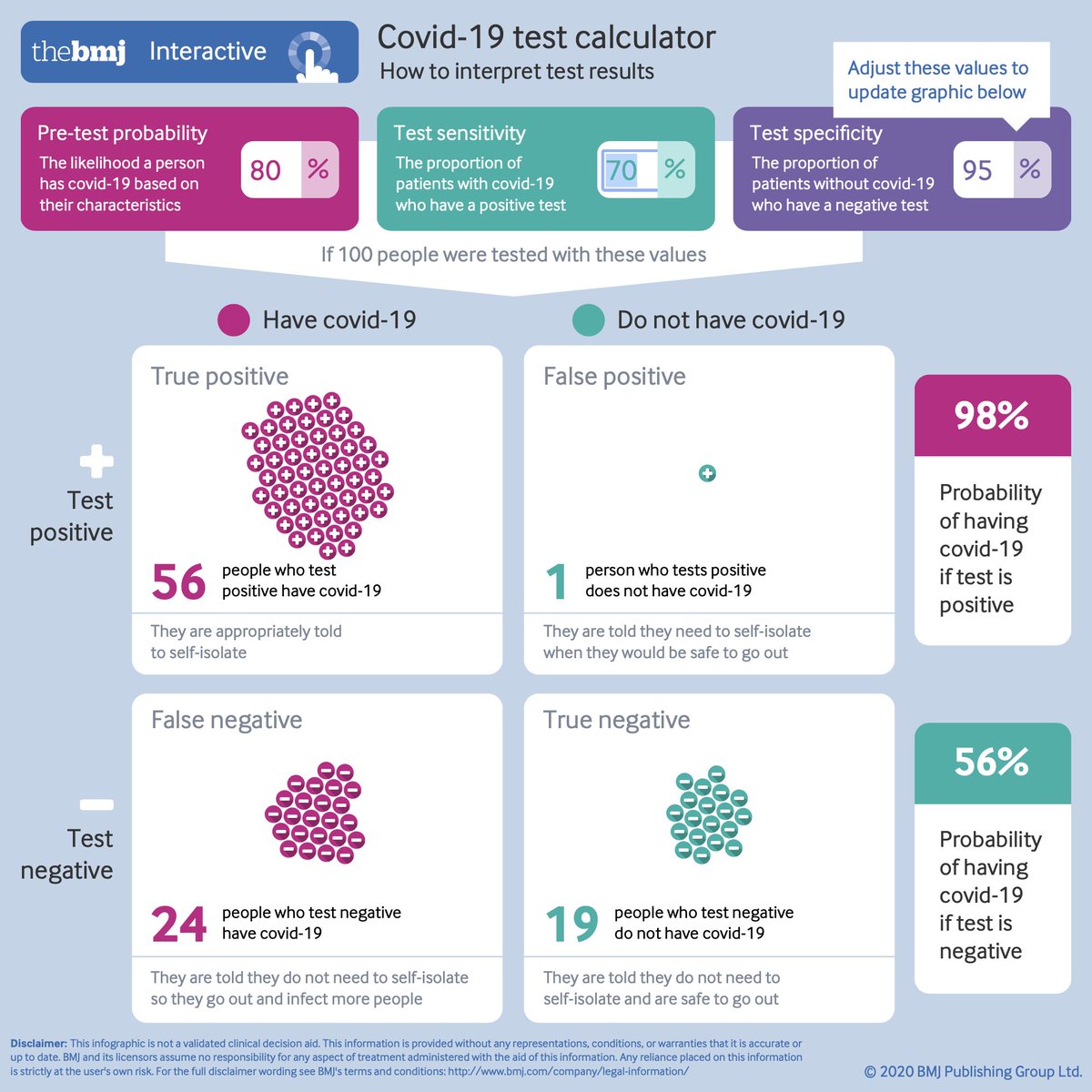 The BMJ on Twitter: "How to interpret a covid-19 test result: Use our new and interactive calculator to understand how to interpret a result #BMJInfographic @will_s_t https://t.co/cmheQ6AI6t… https://t.co/aRe2e0CwHu"