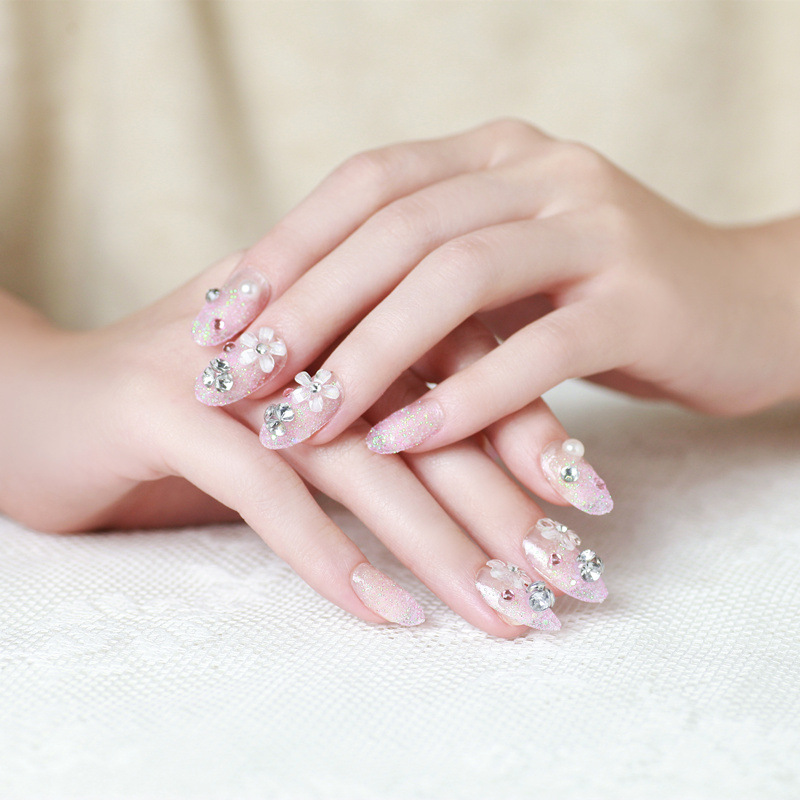 24 Pcs Set French Bridal Wedding Flowers False Nails Nail Art Design Acrylic Full Fake Nail Tips With Glue Walmart Com